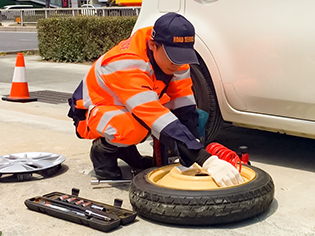 パンクしたタイヤなどを取り外しスペアタイヤに交換いたします。